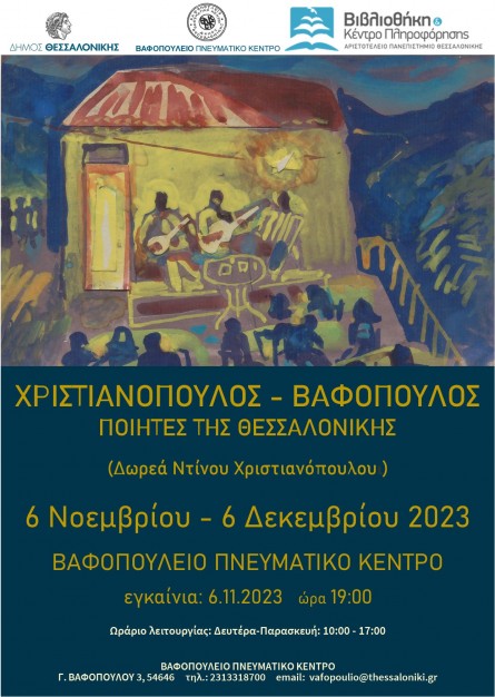 Το Βαφοπούλειο Πνευματικό Κέντρο σε συνεργασία με τη Βιβλιοθήκη και το Κέντρο Πληροφόρησης του Αριστοτελείου Πανεπιστημίου Θεσσαλονίκης διοργανώνει έκθεση με τίτλο «Χριστιανόπουλος-Βαφόπουλος. Ποιητές της Θεσσαλονίκης».