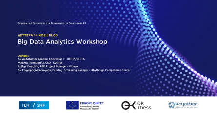 Το OK!Thess, το Κέντρο Ευρωπαϊκής Πληροφόρησης Europe Direct της Κοινωφελούς Επιχείρησης του Δήμου Θεσσαλονίκης (ΚΕΔΗΘ) και το Κέντρο Ικανοτήτων για τη Βιομηχανία 4.0 - Ι4byDesign, διοργανώνουν κύκλο εργαστηρίων για τις κύριες τεχνολογίες της Βιομηχανίας 4.0. Τη Δευτέρα 14/11, στις 18:00 θα πραγματοποιηθεί εκδήλωση με ομιλητές: Δρ. Αναστάσιος Δρόσου, Ερευνητής Γ΄ - ΙΠΤΗΛ / ΕΚΕΤΑ/ Μιχάλης Παπαμιχαήλ, CEO- Cyclopt/ Αλέξης Φουρλής, R&D Project Manager - Vidavo και Δρ. Γρηγόρης Ματενόγλου, Funding & Training Manager – I4byDesign Competence Center.