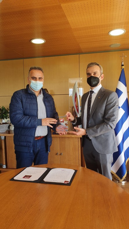 Ο Δήμαρχος Θεσσαλονίκης παρέλαβε την τιμητική πλακέτα από τον Πρόεδρο της Πανελλήνιας Ομοσπονδίας Προσωπικού ΕΚΑΒ Χρήστο Αγγελίδη, που τον επισκέφθηκε μαζί με τον Ταμία της Ομοσπονδίας Χρήστο Βεντούλη.