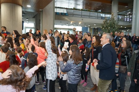 Με πολύ χορό, κέφι και χαμόγελα γιόρτασαν σήμερα στο Δημαρχείο της Θεσσαλονίκης μικροί και μεγάλοι, στη Χριστουγεννιάτικη γιορτή που διοργάνωσαν από κοινού ο Δήμος Θεσσαλονίκης και οι πέντε σύλλογοι εργαζομένων.