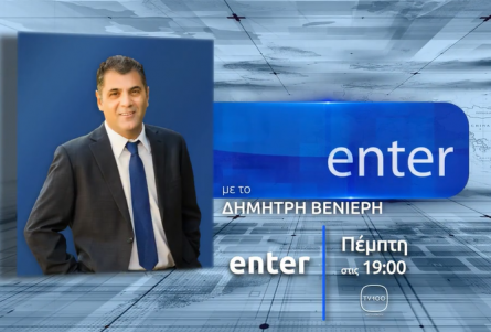 Στην εκπομπή ENTER της Δημοτικής Τηλεόρασης Θεσσαλονίκης TV100, ο Δημήτρης Βενιέρης φιλοξένησε τον υπουργό εσωτερικών Μάκη Βορίδη και τον ευρωβουλευτή του ΣΥΡΙΖΑ Στέλιο Κούλογλου.