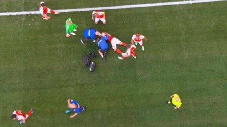 Οι ποδοσφαιριστές και των δύο ομάδων, οι διαιτητές και οι οπαδοί κρατούσαν τα μαλλιά τους, οι στιγμές ήταν έντονα φορτισμένες και άπαντες έμοιαζαν σοκαρισμένοι. Μετά από αρκετή ώρα και μετά από πολλές προσπάθειες του ιατρικού επιτελείου, οι ποδοσφαιριστές σήκωσαν ορισμένα σεντόνια γύρω από το φορείο και έβγαλαν εκτός αγωνιστικού χώρου τον Έρικσεν, ο οποίος παλεύει για τη ζωή του!