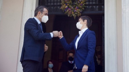 Κατά τη συνάντηση, η οποία σύμφωνα με κυβερνητικές πηγές έγινε σε πολύ θερμό κλίμα, η πρωθυπουργός της Σερβίας απηύθυνε πρόσκληση στον κ.Μητσοτάκη να επισκεφθεί το Βελιγράδι, και ευχαρίστησε τον Έλληνα πρωθυπουργό για το γεγονός ότι η Ελλάδα αποδέχθηκε το ψηφιακό πιστοποιητικό εμβολιασμού για τους Σέρβους επισκέπτες καθώς, όπως είπε, αυτή κίνηση ενισχύει και την εμβολιαστική εκστρατεία της Σερβίας.