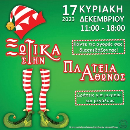 Την Κυριακή 17 Δεκεμβρίου 2023, από τις 11:00 έως τις 18:00, οι άνθρωποι της Άθωνος «ανοίγουν» τα μαγαζιά τους και σας περιμένουν για τα «χρόνια πολλά» και τις εορταστικές ευχές. Οι επισκέπτες μπορούν να κάνουν τις αγορές τους, διασκεδάζοντας με υπέροχες μουσικές, κρασί από Έλληνες παραγωγούς, κυνήγι θησαυρού, έκθεση τέχνης, bazaar βιβλίου και πολλές άλλες δραστηριότητες για παιδιά και για... μεγαλύτερα παιδιά.