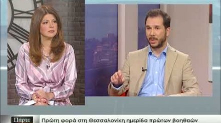 Ο Χρήστος Καραγιάννης συζητά με την Χριστίνα Κανατάκη καλεσμένος στην εκπομπή "Πάρτε Θέση" και τη |