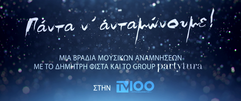 Μια βραδιά μουσικών αναμνήσεων στην TV100 με τον Δημήτρη Φίστα και το group Partyura. Μία αναδρομή στο καλό ελληνικό τραγούδι με παρουσιαστή τον Κώστα Μάντζιο. Καλεσμένοι μέσω skype οι Λάκης Λαζόπουλος, Ιεροκλής Μιχαηλίδης, Νατάσσα Θεοδωρίδου, Δήμητρα Παπαδοπούλου, Κώστας Μακεδόνας, Νίκος Φιλίππου και οικογένεια Μάγρα. Στη μουσική βραδιά συμμετέχουν οι: Δέσποινα Χατζηνικολάου (τραγούδι), Μάνος Καγιάς (τραγούδι), Νίκος Νικητάκης (τραγούδι-κιθάρα), Μάριος Καμαριώτης (μπουζούκι-τραγούδι), Κώστας Μπαλής (πιάνο-πλήκτρα), Νεκτάριος Χαριζάνης (ντραμς).