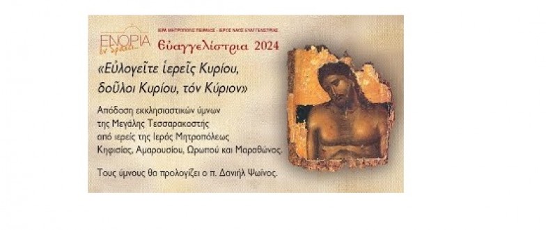 Απόδοση εκκλησιαστικών ύμνων της Μεγάλης Τεσσαρακοστής από Ιερείς Μητροπόλεως Κηφισιάς, Αμαρουσίου, Ωρωπού και Μαραθώνος. Διευθύνει ο Πρωτοπρεσβύτερος π. Χρίστος Κυριακόπουλος. Τους ύμνους προλογίζει ο Αρχιμανδρίτης π. Δανιήλ Ψωίνος.